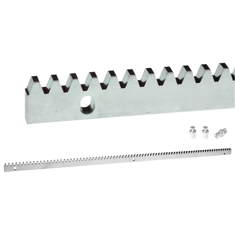 Szerelésre kész készlet – a csomag három szerelőhüvelyt és a fogaslécet tartalmazza, amelyen speciális szintező furatok (ún. ovális furatok) találhatók. Ezek segítségével a fogasléc pontos beállítása a kapun gyors és nem igényel további kiegészítőket. Ez valódi időmegtakarítást jelent minden egyes szerelésnél.