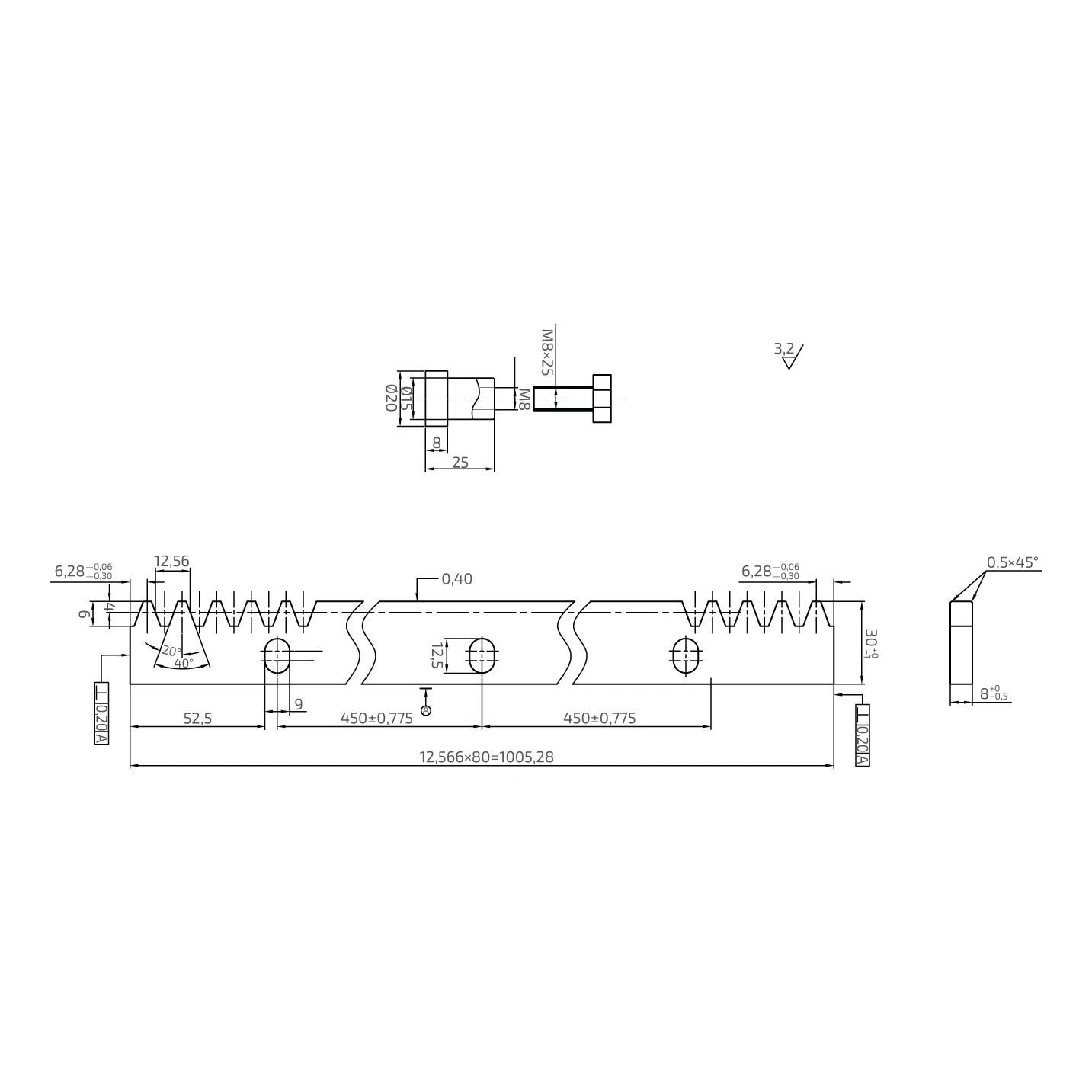 Egyszerű szintezés az ovális szerelőfuratok révén lehetővé teszi a fogasléc helyzetének pontos beállítását még az előzetes rögzítés után is. Az M8-as hüvelyek biztos és tartós rögzítést biztosítanak a kapu szerkezetéhez.